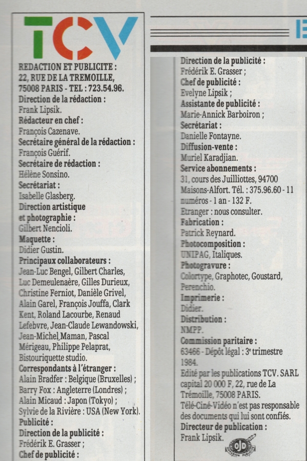 Picture Info : Tele Cine Video - Juillet Aout 1984 - Credits