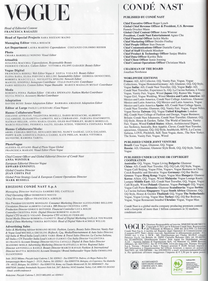 Picture Info : Vogue Italia - Nov 2021 - 854 - Lady Gaga - Credits