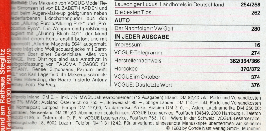 Picture Info : Vogue Deutsch - September 1983 - Credits Small Print