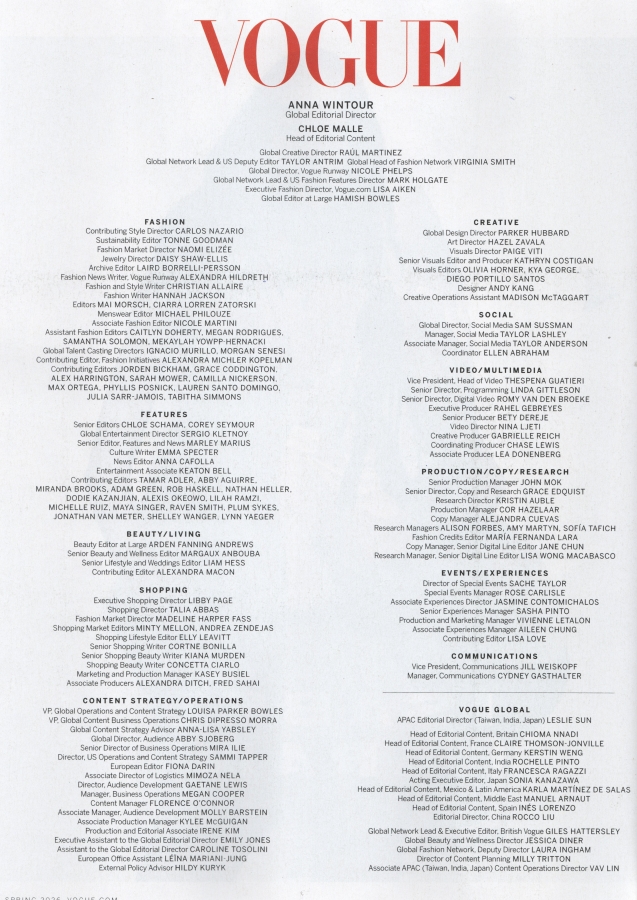 Picture Info : Vogue (US) - Spring 2026 - Masthead Credits