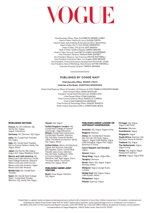 Picture Info : Vogue US - May 2023 - Credits Page 1 as available on the vogue.com website at the time of publication