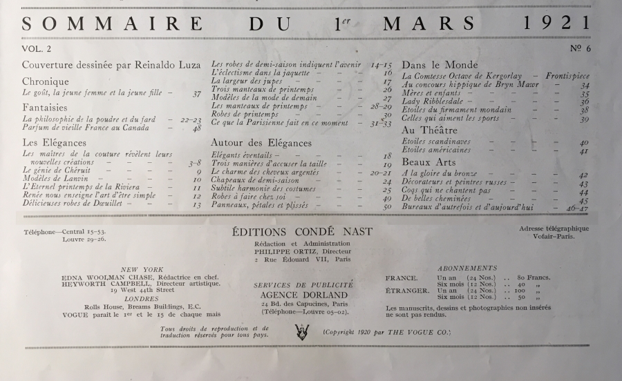 Picture Info : Vogue Edition Française - 1er Mars 1921 - Credits