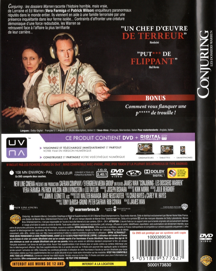 Picture Info : Conjuring - Les Dossiers Warren - DVD Wrapper Back And Spine Section