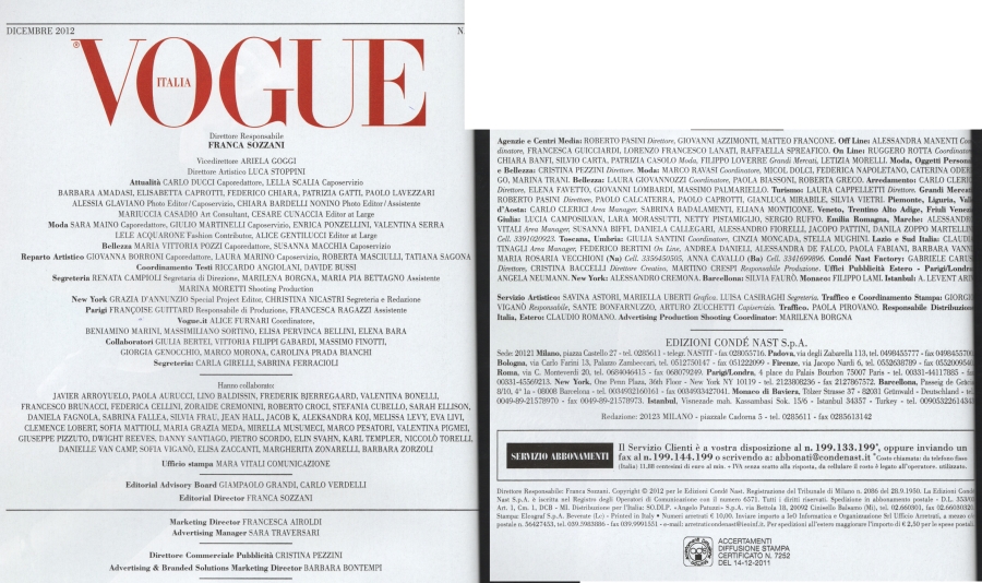 Picture Info : Vogue Italia - December 2012 - Credits