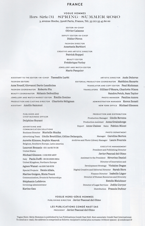 Picture Info : Vogue Hommes - Spring - Summer 2020 - Credits