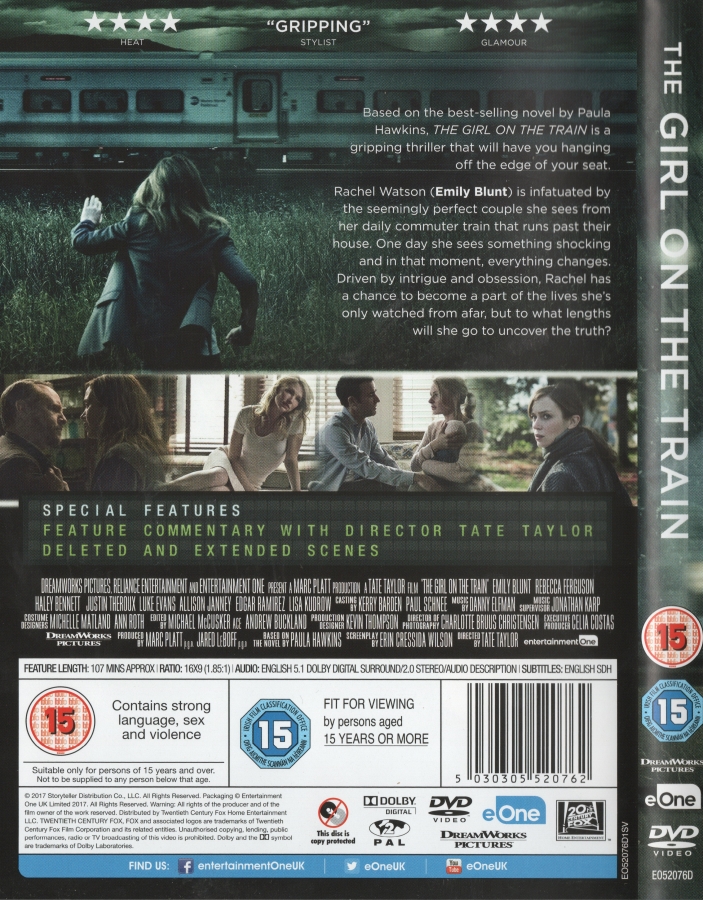 Picture Info : The Girl On The Train - DVD UK Wrapper Cover Section