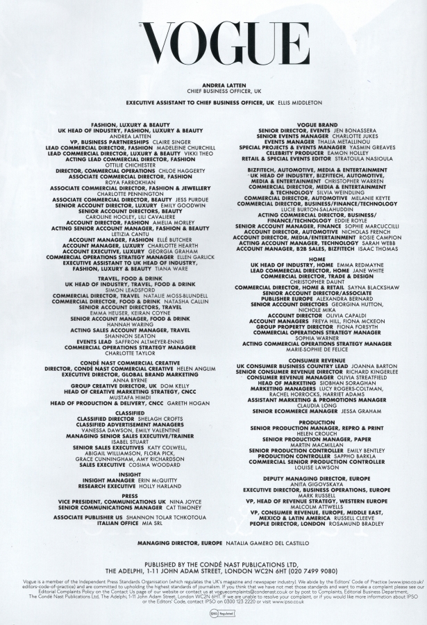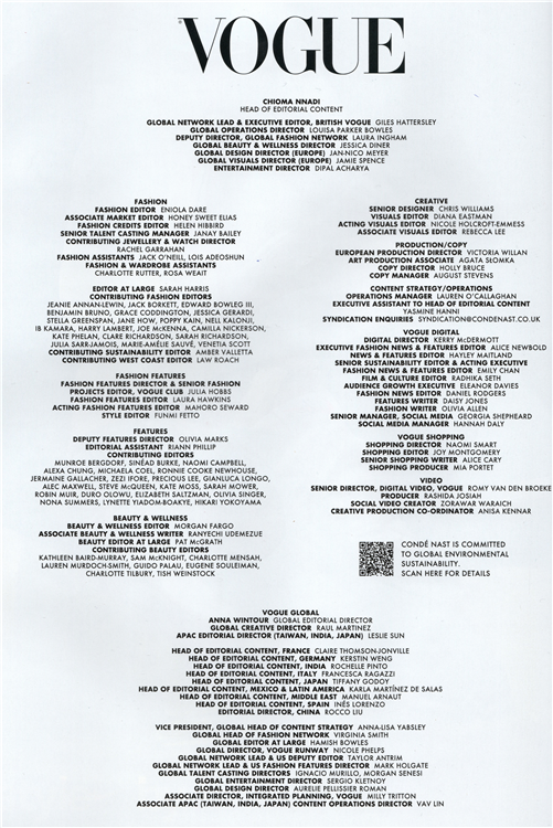 Picture Info : Vogue British - May 2025 - Credits 2nd Page