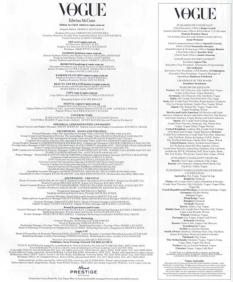 Picture Info : Vogue Australia - January 2021 - Credits