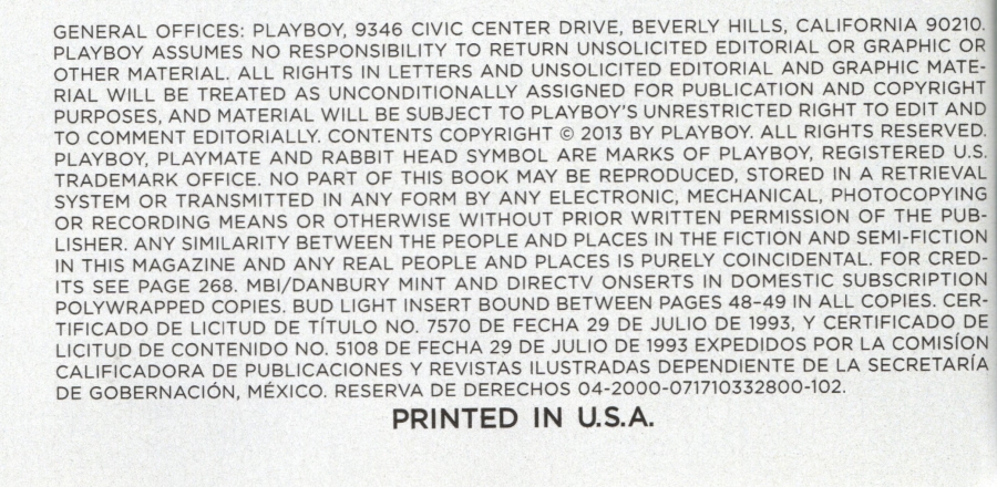 Picture Info : Playboy US - January - February 2014 - Credits Small