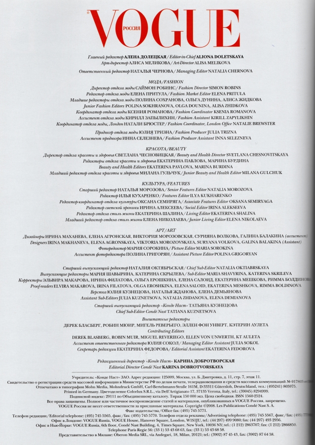 Picture Info : Vogue Russia - April 2008 - Credits
