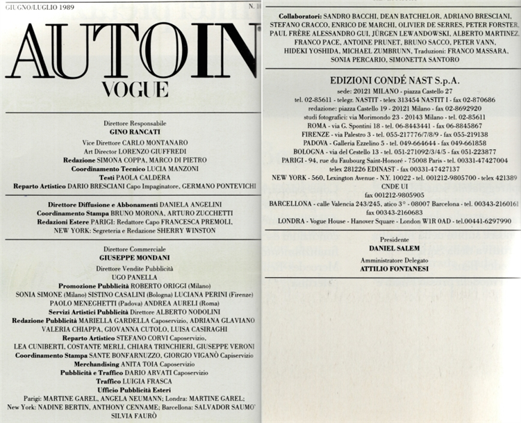 Picture Info : Autoin Vogue - Giu-Lug 1989 - Credits