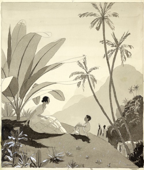 Picture Info : André Édouard Marty illustration. The present sheet may have been intended as an illustration, albeit one that was not used, for Gérard de Houville’s novel Le Seducteur, published in 1926 with numerous illustrations by Marty.