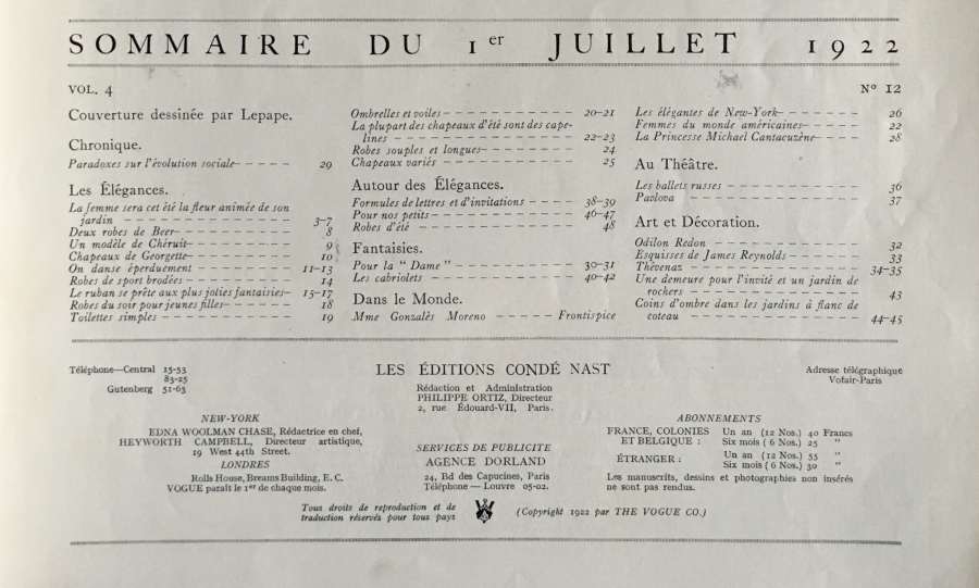 Picture Info : Vogue Edition Française - 1er Juillet 1922 - Credits