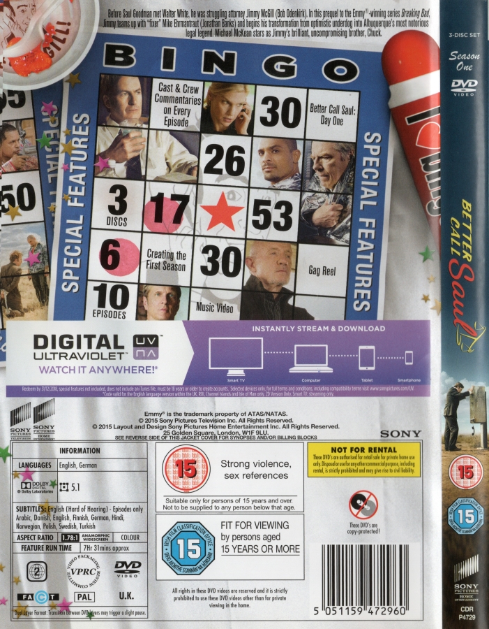 Picture Info : Better Call Saul - DVD Wrapper - Back And Spine Section